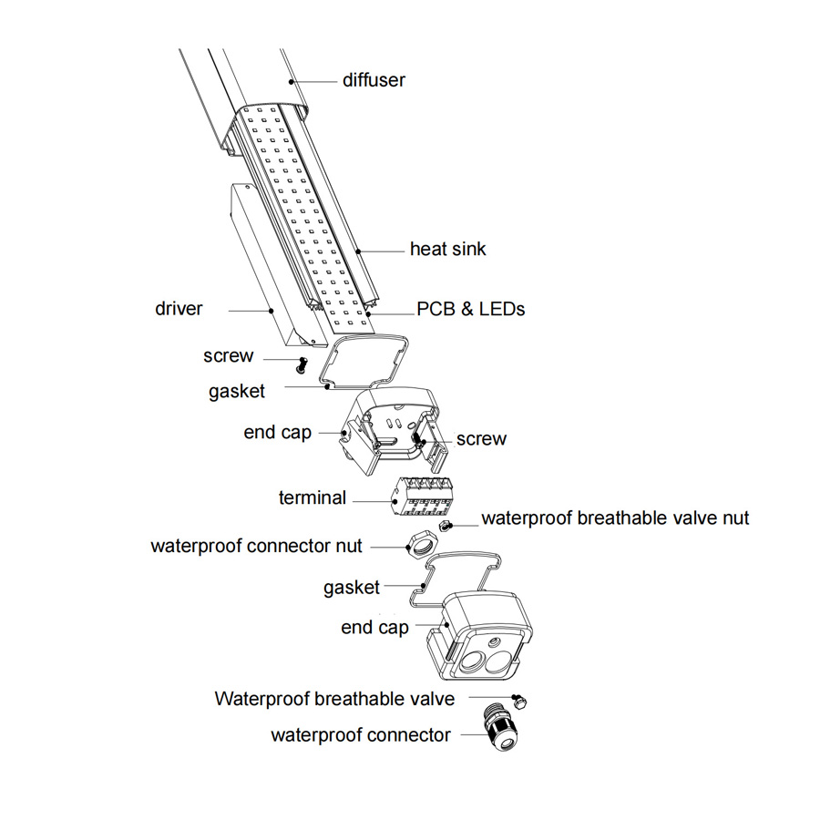 Toto je nový typ trojodolného svietidla IP65 navrhnutého spoločnosťou JE ako profesionálnym výrobcom trojodolného svietidla LED v Číne, inovácie a dizajn našej spoločnosti boli vždy v popredí tohto odvetvia. Toto trojité zariadenie je vyrobené z hliníka potiahnutého plastom. Plášť je celoplastová trubica s použitím dvojfarebnej technológie, spodná časť je biela a povrchový difúzor vyžarujúci svetlo môže byť vyrobený v dvoch druhoch mliečnej bielej a priehľadnej farby. Tento dizajn je nielen krásny, ale aj lacnejší ako polovica hliníka a polovica plastu a úroveň ochrany je veľmi dobrá. Zároveň je navrhnutá s vodeodolným a priedušným ventilom, ktorý dokáže včas vypustiť horúci vzduch v lampe bez ovplyvnenia vodotesnosti.